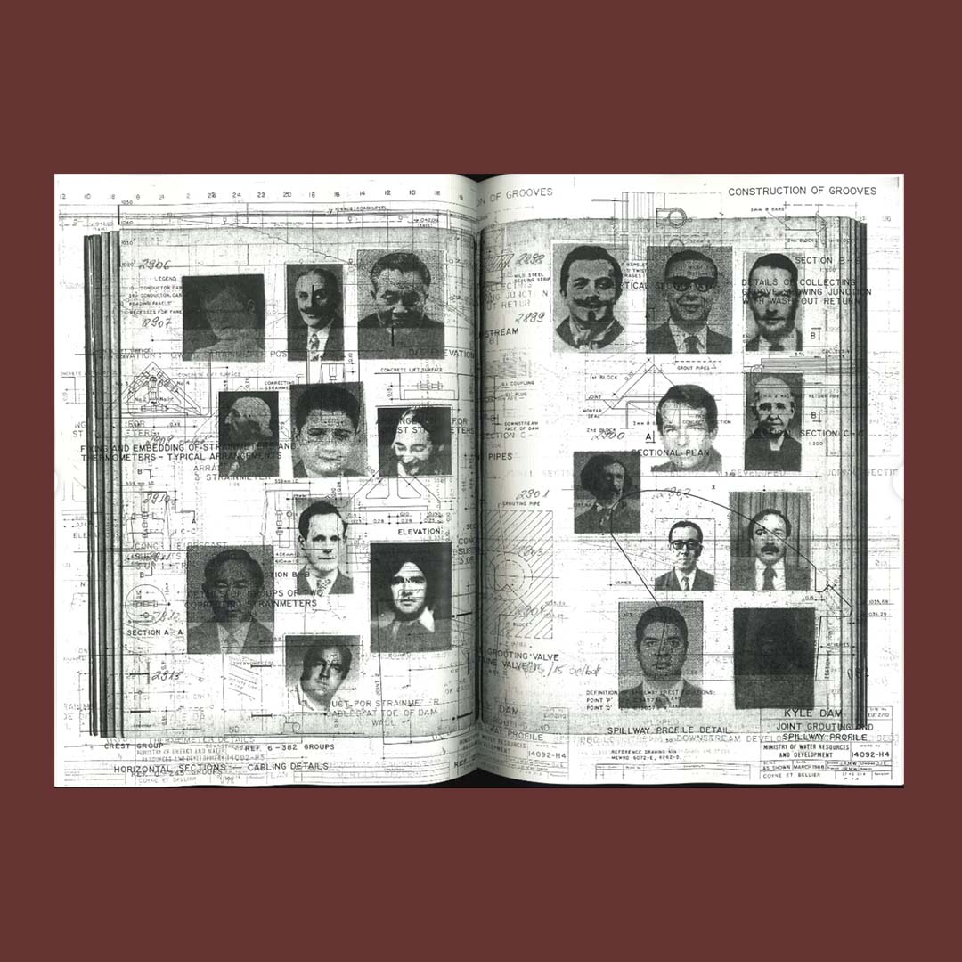 watermarked paper 90gr. / staple binding / selfpublished / 2025 Over 300 portraits cut out and accumulated over 5 years in various books. I arranged them in a stamp album and then photocopied this album onto repurposed architectural blueprints.